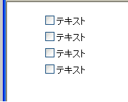 問題は何もないように感じるが、チェックボックス間の空白をつめたい場合やチェックボックスとテキストの位置を合わせたい場合、このままではどうしようもない。